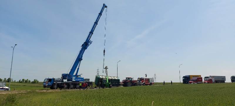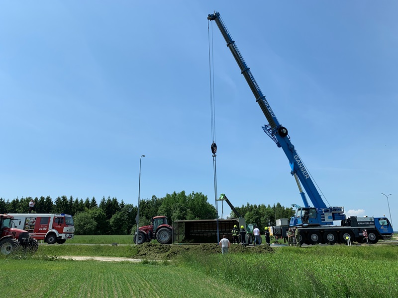 Damit eine möglichst schonende Bergung durchgeführt werden kann, wurde während der Anfahrt des Autokrans einer privaten Firma der Anhänger von dem Ladegut entladen. Somit konnte unmittelbar nach dem Eintreffen des Krans der Anhänger schonend geborgen und von der Unfallstelle entfernt werden. Nachdem die Straße nochmals mittels Straßenbesen gereinigt wurde, konnte die Straße für den Verkehr wieder geöffnet werden.