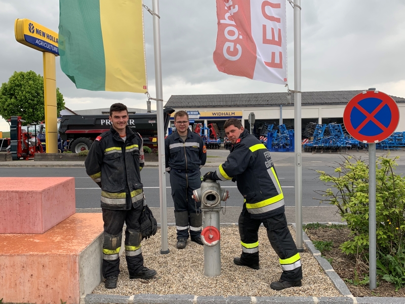 Während dieser Vorbereitungs- und Organisationsarbeiten versuchten die Bauhofmitarbeiter unserer Gemeinde eine Alternativlösung herzustellen. Diese Arbeiten zeigten in weiterer Folge Erfolg, wobei die Ortswasserleitung nach diesen Arbeiten getestet und entlüftet werden musste. Diese Aufgaben übernahmen in enger Absprache mit den Bauhofmitarbeitern die Feuerwehrmitglieder. An mehreren Standorten wurden die Hydranten (die an der Ortwasserleitung angeschlossen sind) geöffnet und dadurch einerseits die in der Leitung befindliche Luft herausgelassen und gleichzeitig diese auch getestet.