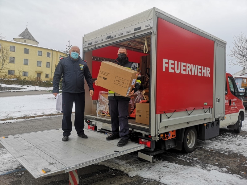 Unterstützung im Rahmen des NÖ KHD-DienstUnterstützung im Rahmen des NÖ KHD-DienstDer Niederösterreichische Feuerwehrverband hat für jede Feuerwehr in Niederösterreich zum Schutz der Mitglieder FFP2 Masken organisiert. Diese Masken wurden bereits vorab am Containerterminal des NÖLFV in Tulln auf alle Bezirke aufgeteilt und abgepackt und wurden nun am 30. Dezember 2020 verteilt.
