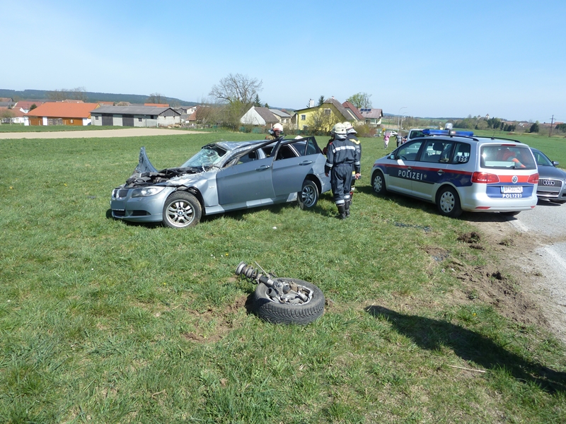 Ein PKW Lenker ist mit seinem Fahrzeug von der Fahrbahn abgekommen - der PKW hat sich anschließend überschlagen und ist in einer Wiese zum Stillstand gekommen.