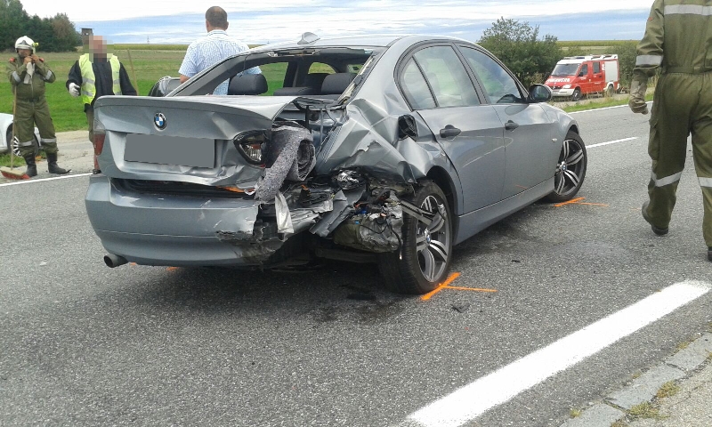 Aus bisher unbekannter Ursache kam es zu einem Auffahrunfall von zwei Fahrzeugen, wobei ein PKW in den Straßen geschleudert wurde und das zweite Fahrzeug beschädigt auf der Fahrbahn zu stehen kam.