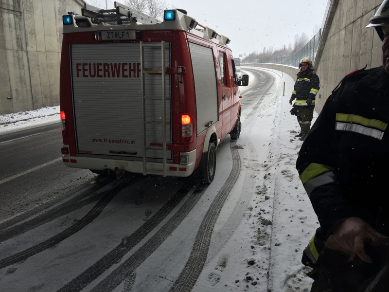 Göpfritz/Wild - Die Freiwillige Feuerwehr Göpfritz wurde am Samstag dem 23. Jänner 2016 um 11.34 Uhr mittels stiller Alarmierung von der Landeswarnzentrale NÖ zu einer Fahrzeugbergung auf der LB2 - Bereich Bahnunterführung alarmiert.
