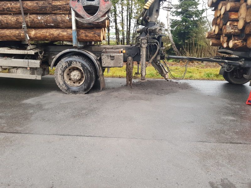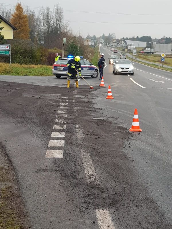 Der LKW - Lenker bewegte das Fahrzeug noch bis in die in der Nähe befindliche Bahnhofstraße, sodaß das meiste Hydrauliköl in diesem Bereich, und zum Glück nicht auf der stark befahren LB2, ausgetreten ist.