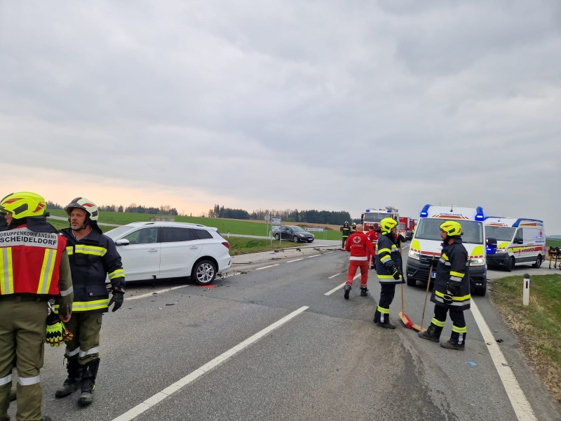 Im Kreuzungsbereich der LB2 mit der L8106 kam es zu einem Zusammenstoß zweier PKW - nach der Ersterkundung durch den Einsatzleiter ging man von mehreren eingeklemmten Personen aus, wodurch durch den Einsatzleiter die Alarmstufe auf die Alarmstufe 3 erhöht wurde und daher zu den bereits im Einsatz befindlichen Feuerwehren Stögersbach, Scheideldorf und Schwarzenau auch die Feuerwehren Echsenbach und Göpfritz/Wild alarmiert wurden.