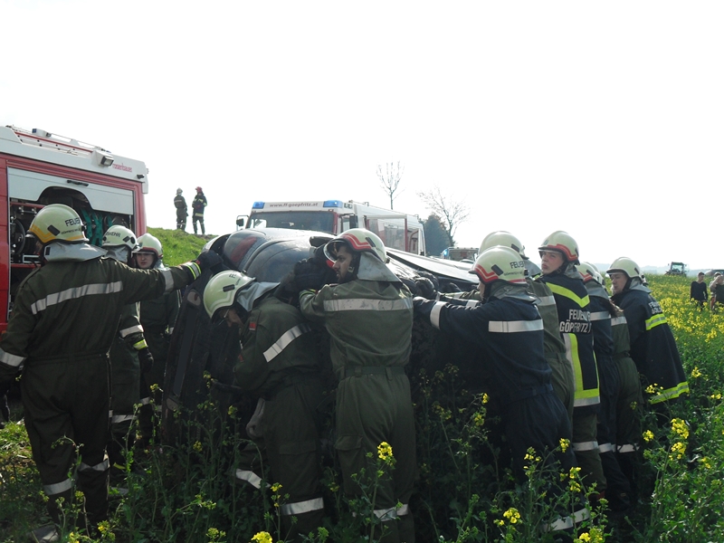 Göpfritz/Wild - Die Freiwillige Feuerwehr Göpfritz wurde am Freitag, dem 25. April 2014 um 16:35 Uhr von Florian Niederösterreich mittels Sirene und Pager zu einem Verkehrsunfall mit eingeklemmter Person auf der LB2 - nach dem Allwangspitz Richtung Scheideldorf - gerufen.