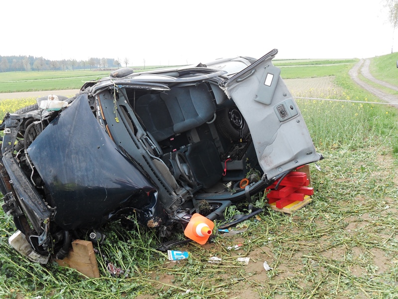 Ein PKW kam - aus bisher unbekannter Ursache - links von der Fahrbahn ab, krachte seitlich gegen einen Baum, Überschlug sich und kam auf der Fahreseite liegend in einem angrenzenden Feld zum Stillstand.