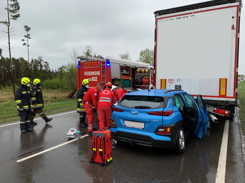 Aus bisher unbekannter Ursache kam es zu einem Auffahrunfall zwischen einem LKW und einem PKW, woraufhin sich der PKW unter den LKW schob und sich darunter verkeilte. In weiterer Folge konnte der verletzte Lenker das Fahrzeug nicht mehr alleine verlassen.