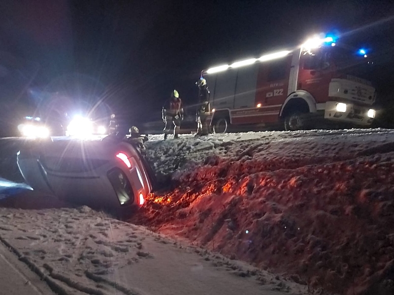 Ein Lenker kam aus bisher unbekannter Ursache von der Fahrbahn ab, fuhr eine steile ca. 4 m tiefe Böschung hinab und kippte nach dem Aufprall im Graben auf die Seite, wobei der Lenker glücklicherweise unverletzt blieb.