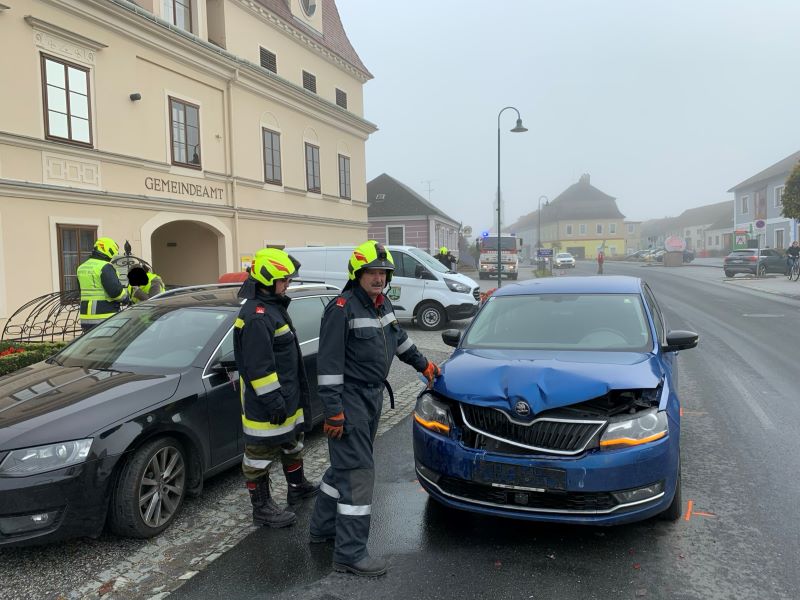 Göpfritz/Wild - Die Freiwillige Feuerwehr Göpfritz/Wild wurde am Freitag, den 18. Oktober 2019 um 10:04 Uhr von der Landeswarnzentrale mittels stillem Alarm zu einer Fahrzeugbergung auf der LB2 vor dem Gemeindeamt alarmiert.