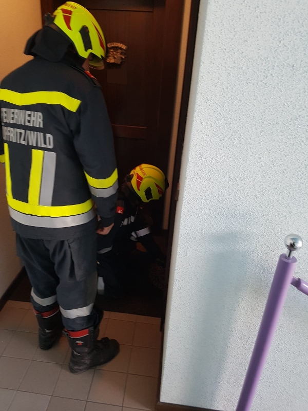 Eine Person hatte starke Schmerzen und konnte die Tür nicht mehr selbstständig öffnen, weshalb die Rettung die Feuerwehr zur Unterstützung bei der Turöffnung anforderte.