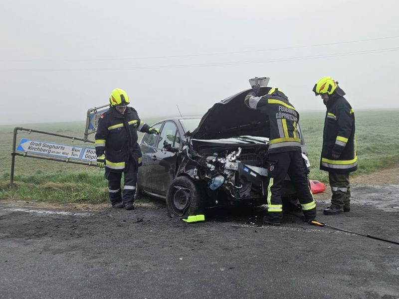 Göpfritz/Wild - Die Freiwillige Feuerwehr Göpfritz/Wild wurde am 16. April 2025 um 07:46 Uhr mittels Sirenenalarm zu einem Verkehrsunfall mit "unklarer Lage" auf der L55 bei Almosen alarmiert.