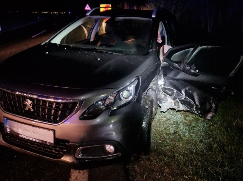 Zwei PKW sind im Bereich einer Kurve kurz vor dem Kreisverkehr zusammengestoßen - ein PKW wurde dabei in den angrenzenden Straßengraben geschleudert, der zweite PKW kam schwer beschädigt auf der Fahrbahn zum Stillstand.