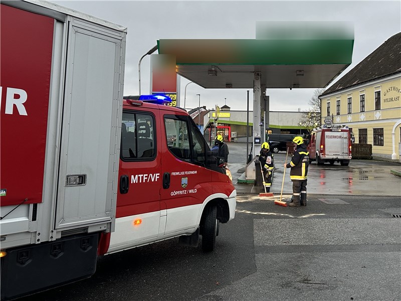 Göpfritz/Wild - Die Freiwillige Feuerwehr Göpfritz/Wild wurde am Freitag, dem 29. November 2024 um 14.59 Uhr von Florian Niederösterreich mittels stillem Alarm zu einem Betriebsmittelaustritt auf einer SB-Tankstelle im Ortsgebiet von Göpfritz/Wild alarmiert.