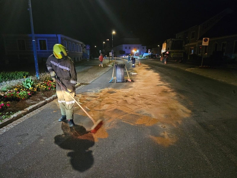 Göpfritz/Wild - Die Freiwillige Feuerwehr Göpfritz/Wild wurde am Montag, dem 17. Juli 2023 um 22.24 Uhr von Florian Niederösterreich mittels stillem Alarm zu einer Ölspur auf der LB2 / Hauptstraße alarmiert.