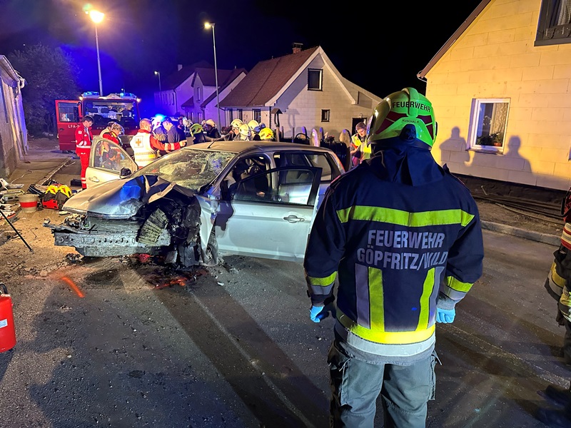 Scheideldorf - Die Freiwillige Feuerwehr Göpfritz/Wild wurde am 18. August 2023 um 00:04 Uhr von der Landeswarnzentrale mittels Sirene und Pager zu einem Verkehrsunfall mit Menschenrettung auf der LB2 alarmiert.