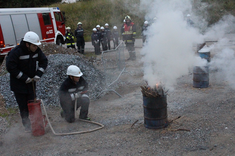 Am Samstag begann der Tag schon sehr früh, da bereits um 06.00 Uhr der erste Übungseinsatz auf die Jugendlichen wartete. Nachdem sie in der Fahrzeughalle in Uniform angetreten waren, wurden sie auf das RLFA 2000 und LFA aufgeteilt und begaben sich mit einigen aktiven Feuerwehrmitgliedern Richtung Sportplatz.