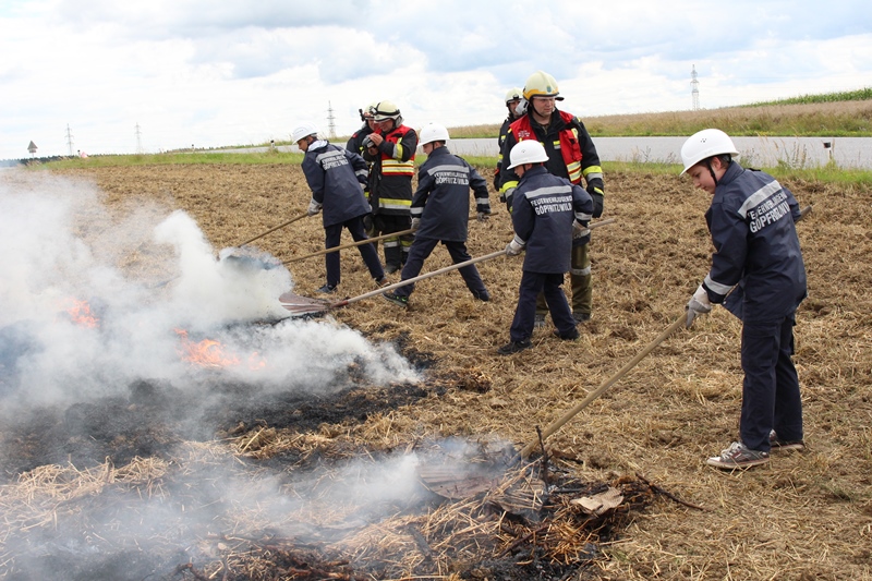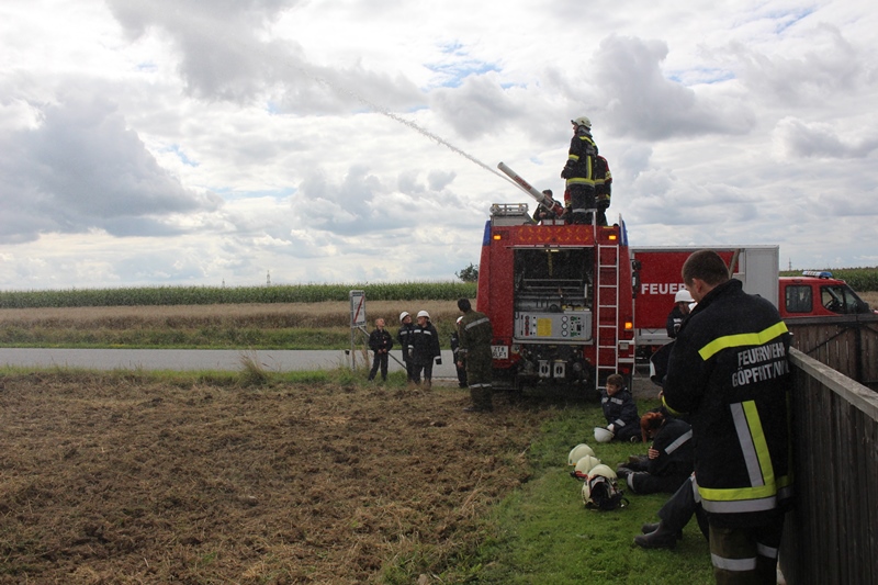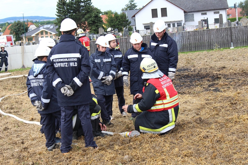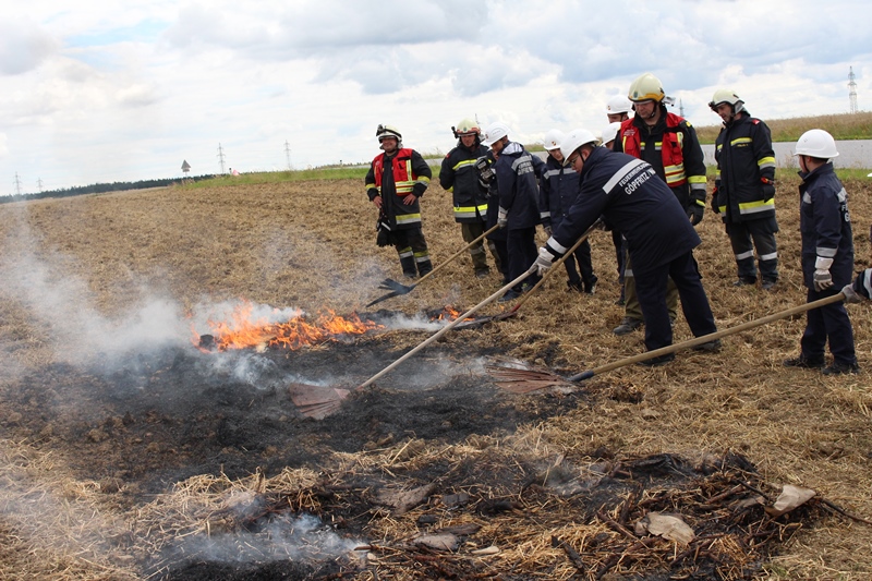 Um 15.00 Uhr folgte dann der letzte Übungseinsatz. Im Bereich des Friedhofes geriet auf einem Feld etwas Stroh in Brand. Auch diesen Einsatz konnten die Jugendlichen, gemeinsam mit einigen aktiven Feuerwehrmitgliedern, erfolgreich meistern.