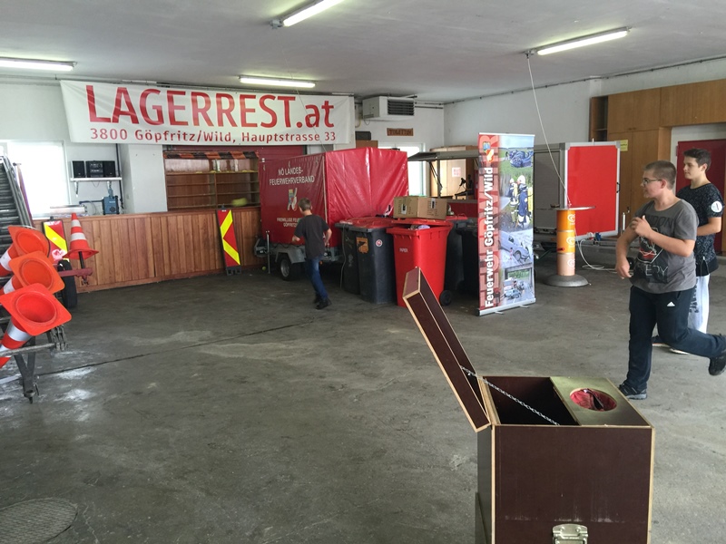 Neben der Station Kübelspritze konnte man mit einem Tennisball seine Geschicklichkeit testen, sowie bei einigen Experimentariumskisten des NÖLFV verschiedene Aufgaben erledigen. Die Jugendlichen veranstalteten in dieser Zeit auch ein kleines Wutzlerturnier.
