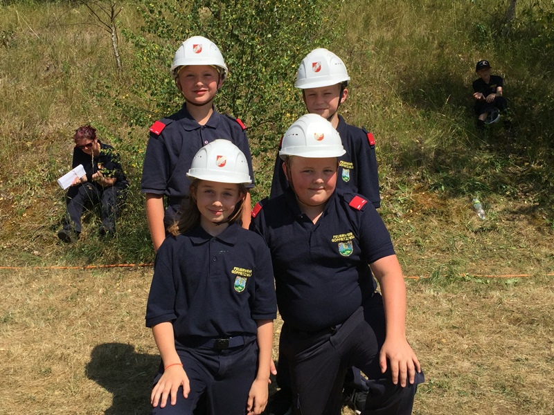 Neben den zwei Feuerwehrjugendmitgliedern, die in der Bewerbsgruppe teilnahmen, nahmen auch vier Mitglieder am Bewerb um das Feuerwehrjugendbewerbsabzeichen, welcher für die unter 12-jährigen Feuerwehrjugendmitgliedern stattfindet, teil.