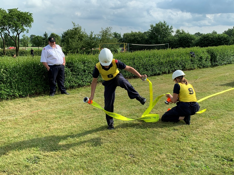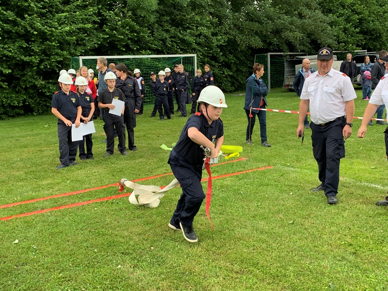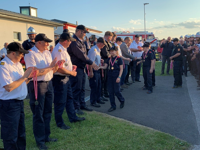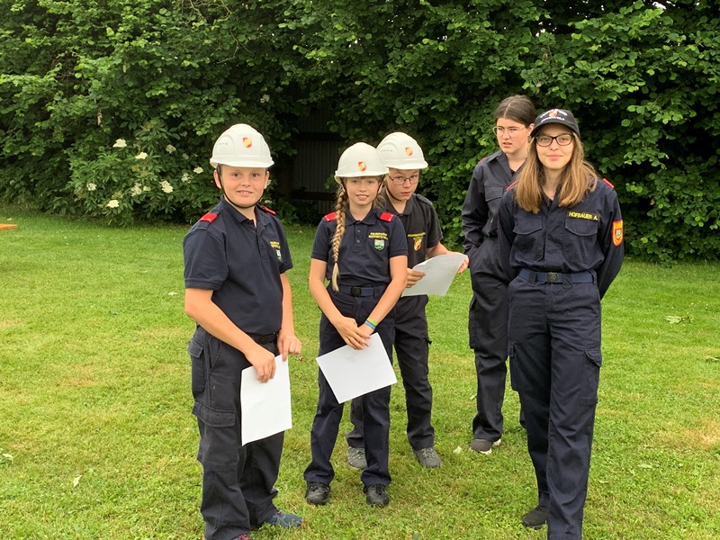 Neben den sechs Feuerwehrjugendmitgliedern, die in der Bewerbsgruppe teilnahmen, nahmen auch drei Mitglieder am Bewerb um das Feuerwehrjugendbewerbsabzeichen, welcher für die unter 12-jährigen Feuerwehrjugendmitgliedern stattfindet, teil.