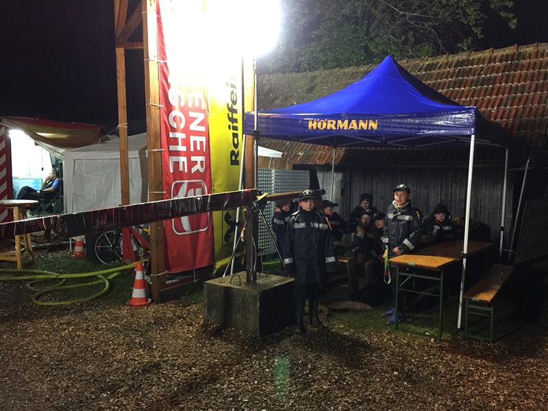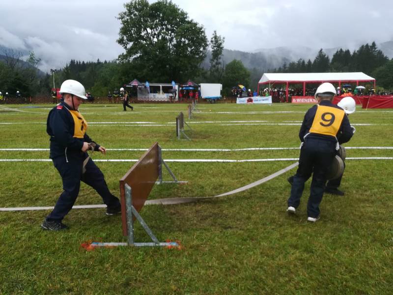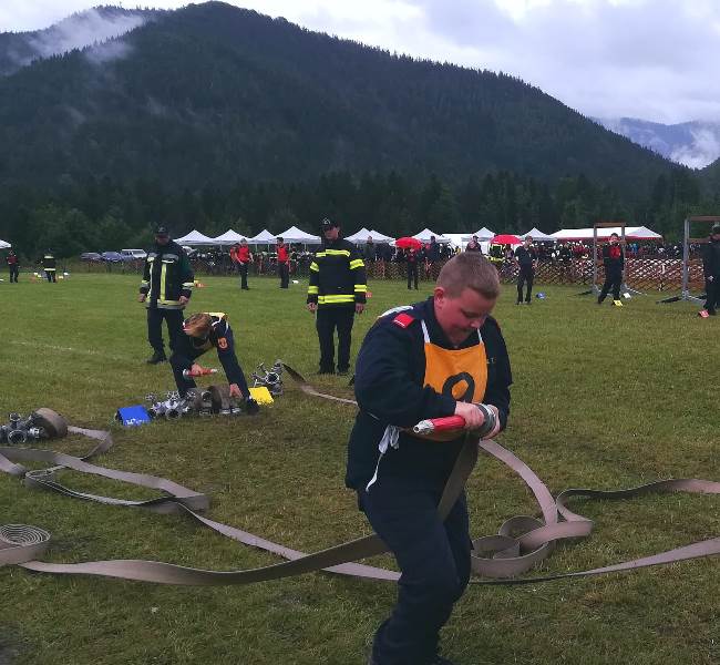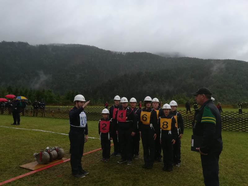 Bereits in der Nacht von Donnerstag auf Freitag begann es leider zu regnen und teilweise sogar zu schütten. Somit verwandelte sich die Lagerstraße in eine große Schlammpfütze. Trotz des Regens traten JFM Dominik Böhm-Gundacker, JFM Lukas Mödlagl und JFM Tobias Raidl beim Bewerb um das Feuerwehrjugendleistungsabzeichen in Bronze an. Dies taten sie gemeinsam mit den Kameraden der Feuerwehren Altpölla und Zwettl-Stadt. Gemeinsam konnten sie in souveräner Art und Weise die Hindernisbahn und den Staffellauf meistern.