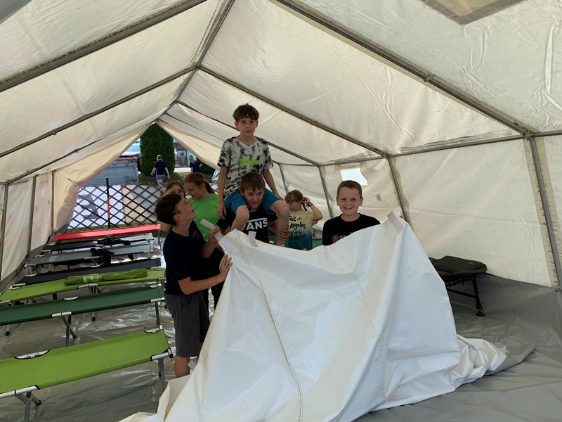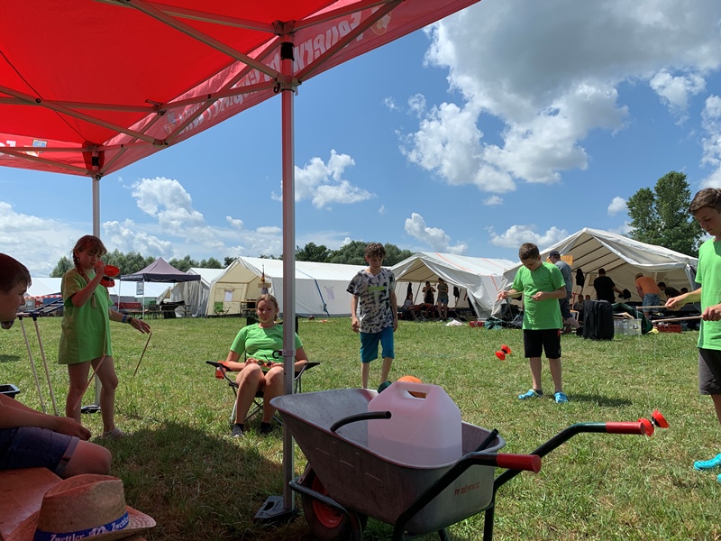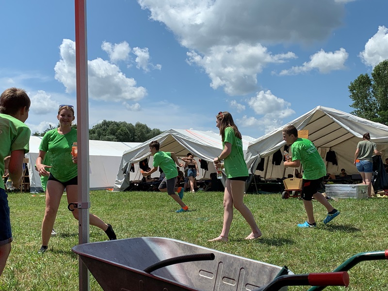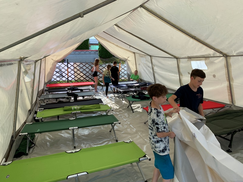 Nachdem die Jugendlichen am beindruckenden Lagergelände eintrafen, wurde sofort damit begonnen das Zelt gemeinsam mit den Betreuern aufzubauen. Wobei die Jugendlichen einen Großteil der Aufbauarbeiten selbst gemacht haben. Schon nach kurzer Zeit war das Zelt aufgebaut und man konnte mit dem Einräumen beginnen und sich am Lagergelände wohlfühlen.