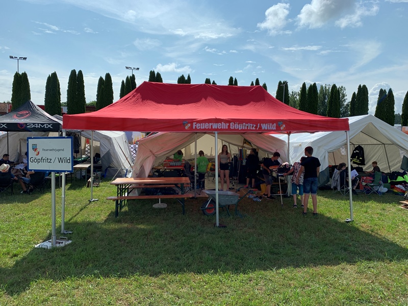 Am Nachmittag machten sich JFM Sarah Dangl und JFM Joel Dangl gleich auf den Weg zum Bewerbsplatz, wo die zwei ihr Können beim Bewerb um das Feuerwehrjugendbewerbsabzeichen in Bronze bravourös unter Beweis stellen konnten. Den weiteren Tag verbrachten die Jugendlichen damit, das Lagergelände zu erkunden und gemeinsam Spiele zu spielen.