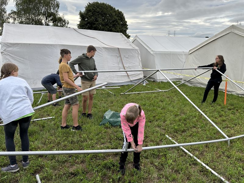 Nachdem die Jugendlichen am beindruckenden Lagergelände eintrafen, wurde sofort damit begonnen das Zelt gemeinsam mit den Betreuern aufzubauen. Wobei die Jugendlichen einen Großteil der Aufbauarbeiten selbst gemacht haben. Schon nach kurzer Zeit war das Zelt aufgebaut und man konnte mit dem Einräumen beginnen und sich am Lagergelände wohlfühlen.
