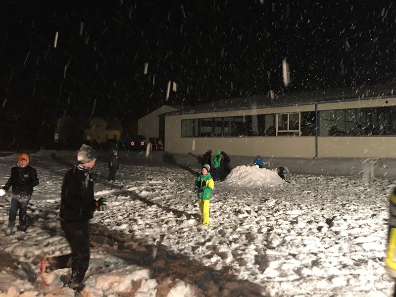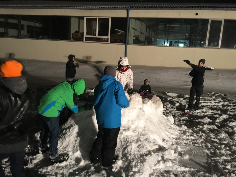 Nachdem sich die Jugendlichen einen kleinen Schutzwall aus Schnee gebaut haben, ging es schon los mit der Schneeballschlacht. Dabei zeigte sich die Begeisterung der Jugendlichen und so flogen so manche Schneebälle auch den Betreuern um die Ohren.