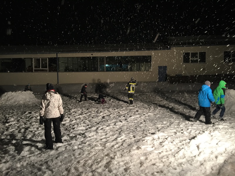 Nach der anstrengenden und aufregenden Schneeballschlacht wärmte man sich mit einem Tee im FF-Haus auf.