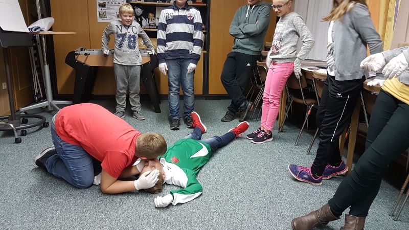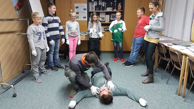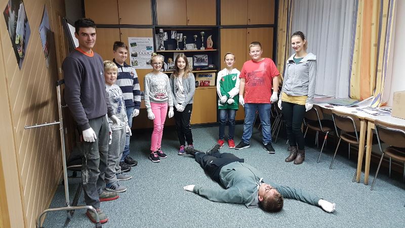Ein besonderer Dank gilt hier unseren beiden Feuerwehrsanitätern Sachbearbeiterin FMD SB Daniela Zulus und FM Michael Gutmann. Beide engagieren sich ehrenamtlich auch beim Roten Kreuz als Rettungssanitäter und brachten den Jugendlichen die Erste-Hilfe-Maßnahmen fachgerecht bei.