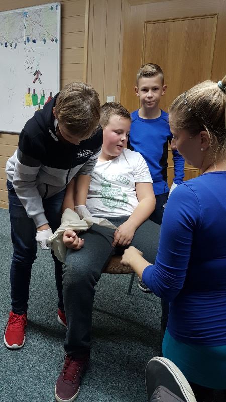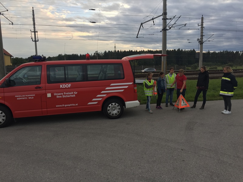 Dabei wird besonders darauf geachtet, dass die Feuerwehrjugendmitglieder in der Praxis eine Unfallstelle fachgerecht absichern können und die richtigen Abstände und Geräte dafür verwenden. Weiters müssen die Jugendlichen die stabile Seitenlage an einer Person anwenden können sowie Erste-Hilfe Maßnahmen an einem regungslosen Menschen durchführen können. Ebenso lernen die Kinder wie man eine stark blutende Wunde am Unterarm und eine Verbrühung mit heißem Wasser behandelt.