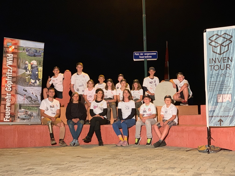 Göpfritz/Wild - Am Freitag den 13. September 2019 besuchte der InvenTOUR Bus das neu gesegnete Denkmal der vergessenen Feuerwehren in Göpfritz/Wild. Der Bus stellt ein mobiles Vermittlungsprogramm der Kunst im öffentlichen Raum des Landes NÖ dar und soll die Dörfer mit Kunst in Berührung bringen.