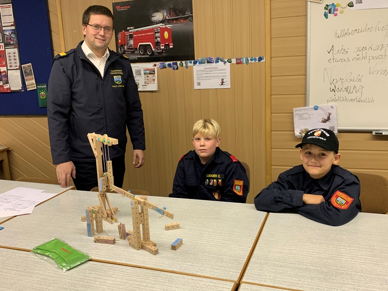 Gerätekunde: Bei dieser Station müssen die Kinder mehrere Geräte richtig erkennen und auch erklären können. Bei der nächsten Station mussten die jüngeren Feuerwehrjugendmitglieder anhand eines Modells "lose und feste Rollen" aber auch das Hebelgesetz erklären können.