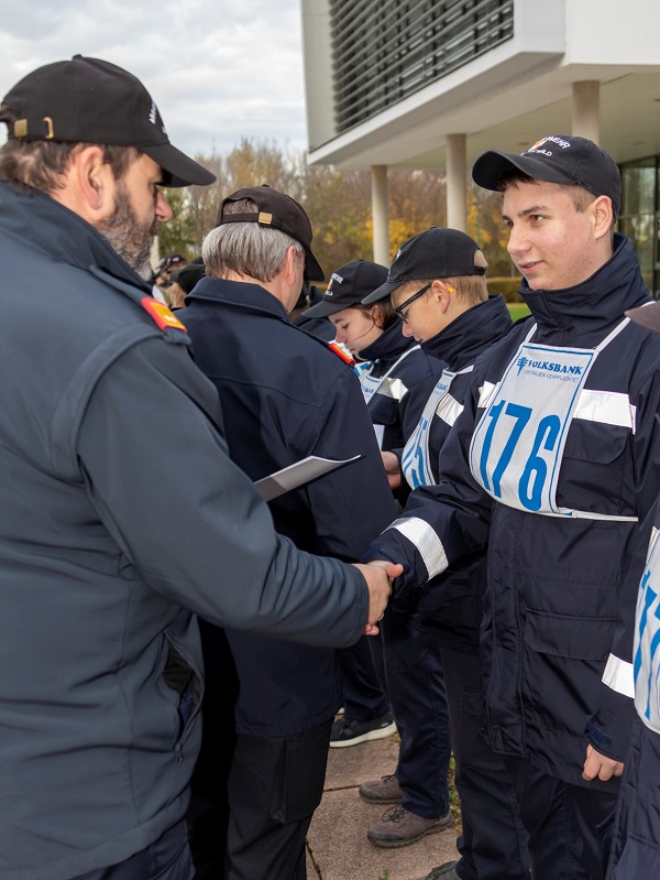 - Verhalten bei Notfällen: Die Teilnehmer müssen bei dieser Station einen Notruf richtig absetzen sowie den Notfallcheck und die stabile Seitenlage an einer Person durchführen können sowie die Bestandteile der Einsatzbekleidung erkennen.