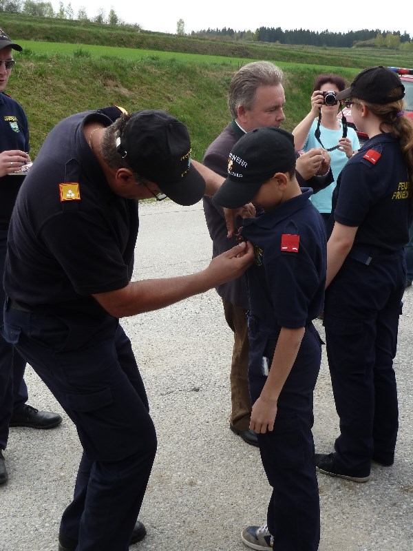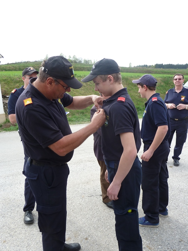 Die Abzeichen wurden den Mitgliedern der Feuerwehrjugend von BFKDT OBR Franz Knapp, BR Willi Renner und LAbg. Franz Mold höchst persönlich überreicht.