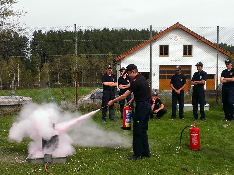 Erstmals konnten die Feuerwehrjugendmitglieder, welche das Wissenstestabzeichen in Gold machten, die richtige Anwendung von tragbaren Feuerlöschern praktsich üben.