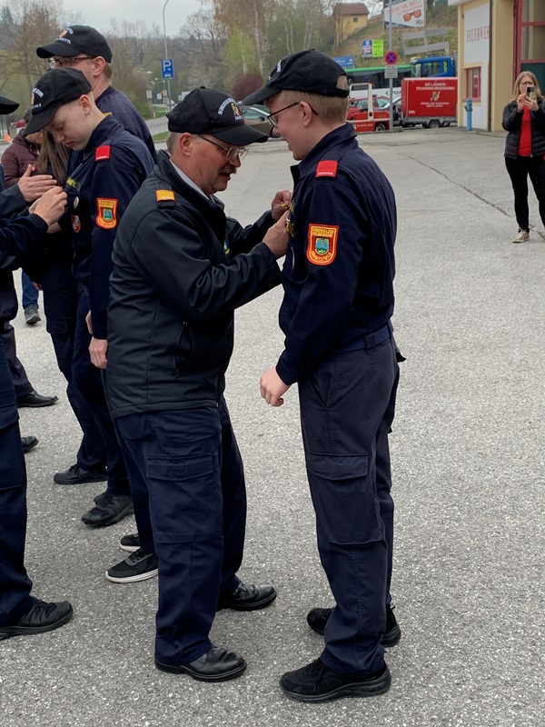 Die Abzeichen wurden den Mitgliedern der Feuerwehrjugend von BFKDT OBR Ewald Edelmaier und BFKDTSTV BR Karl Kainrath persönlich überreicht. OBR Ewald Edelmaier würdigte in seiner kurzen und jugendgerechten Ansprache auch das Engagement und den Einsatz der Jugendbetreuer und Ausbilder in den Feuerwehren. Durch dieses Engagement ist ein solcher Erfolg der Feuerwehrjugendmitglieder erst möglich.