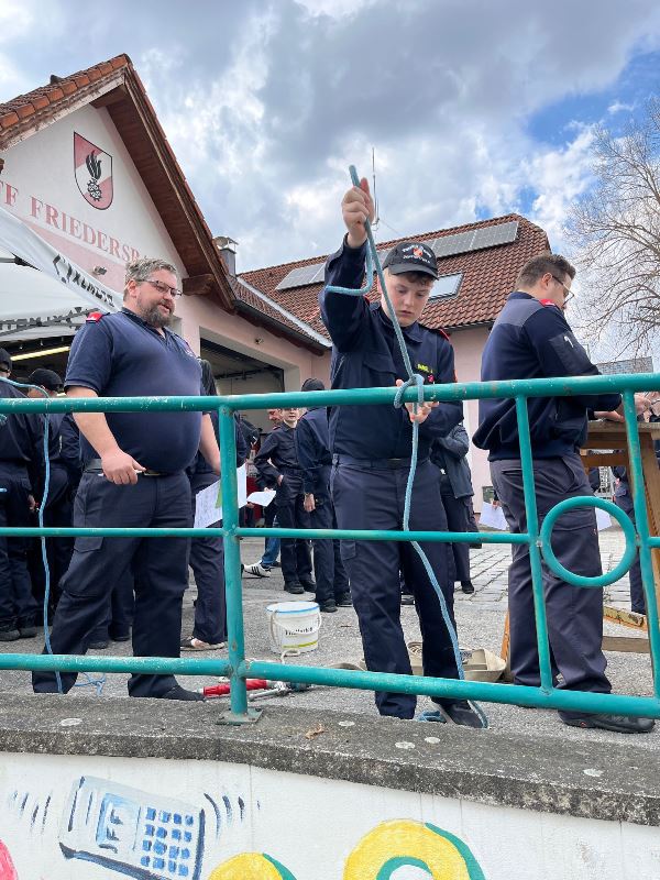 Während die 10- und 11-Jährigen im Rahmen des Wissenstestspiels knifflige Fragen beantworten mussten, ging es für den etwas älteren Nachwuchs richtig zur Sache. Ihr Wissen wurde bei der Geräte- und Ausrüstungskunde für den Brandeinsatz, der Geräte- und Ausrüstungskunde für die technische Hilfeleistung, den Dienstgraden, der Knotenkunde und den Kleinlöschgeräten auf die Probe gestellt.