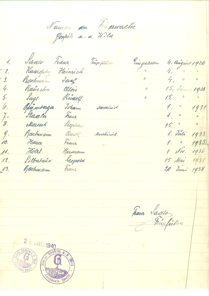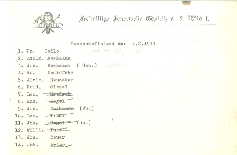 | 30.11.1939 - | Wehrführer | Franz Sadlo | Obergärtner |